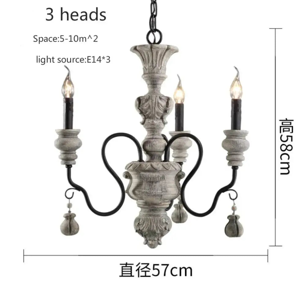Nordic Retro Wood Look Chandelier Light for Living Room and Restaurant 3 heads Chandelier