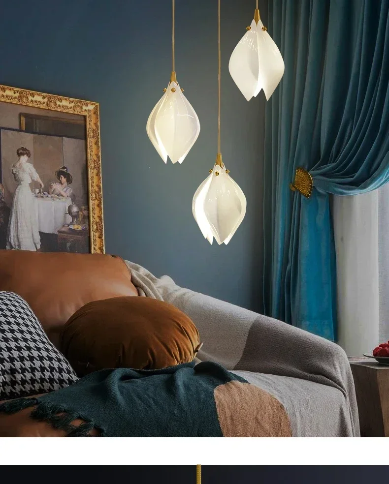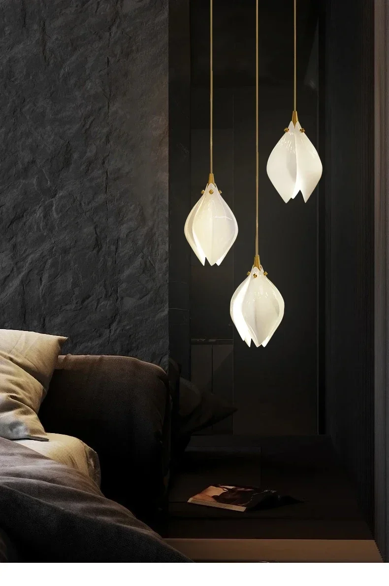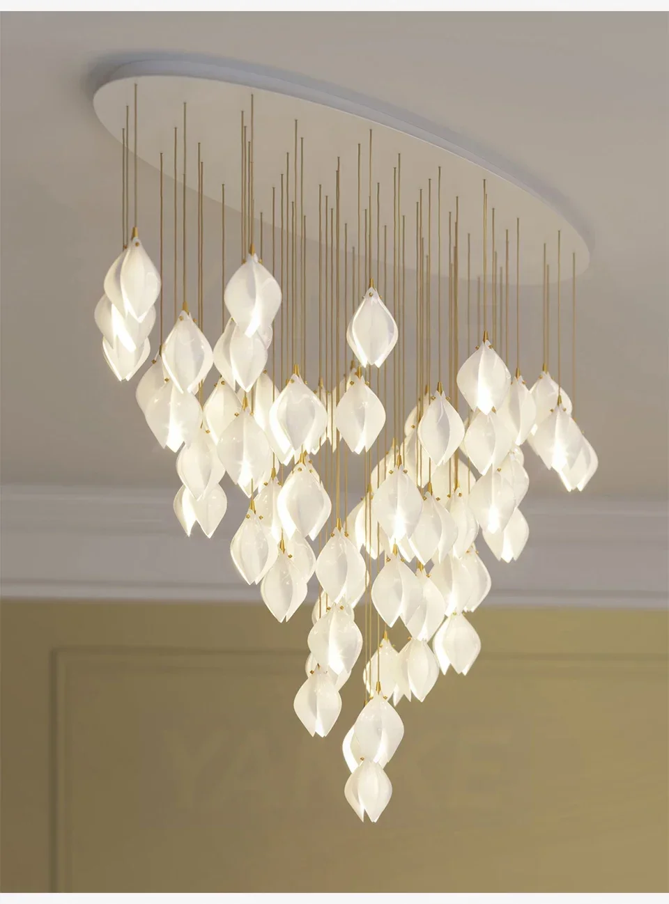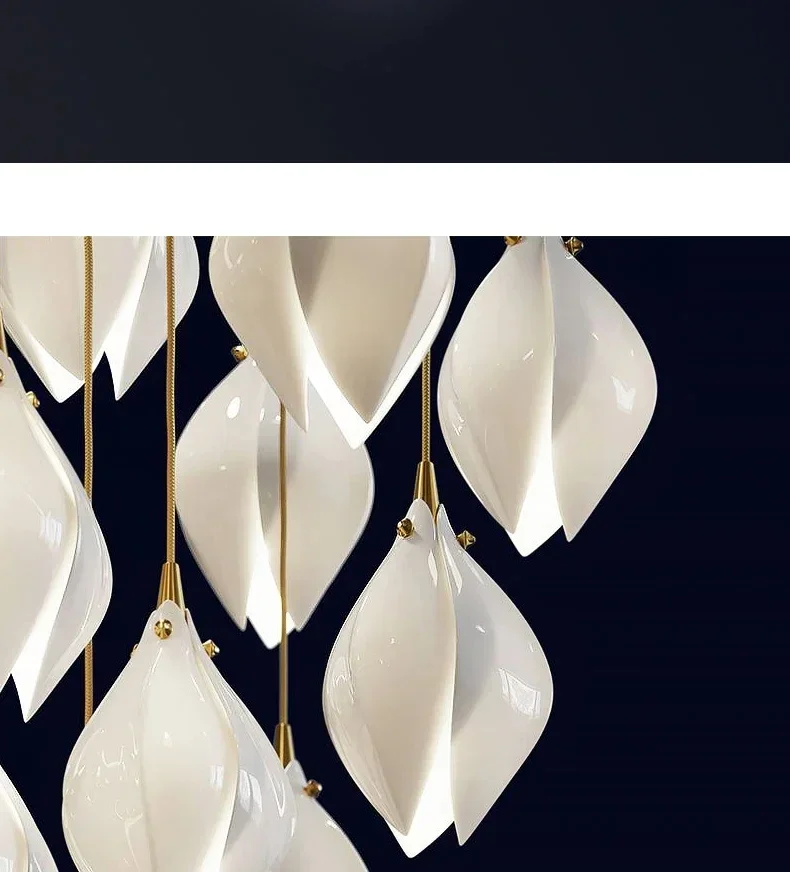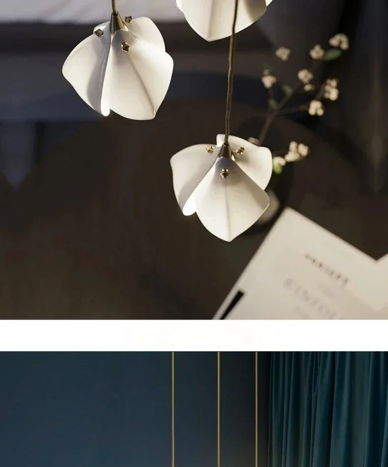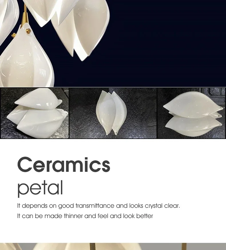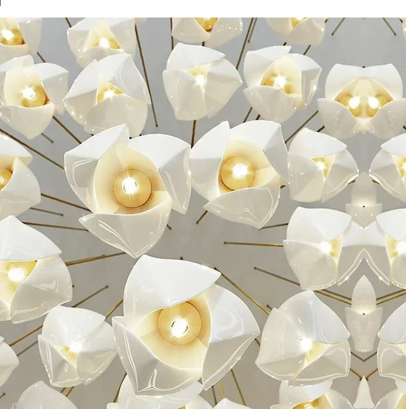 This ceramic magnolia chandelier is a luxury ceiling light designed to elevate modern interiors with a soft floral inspired look. With a polished chrome finish and elegant hanging form, it creates a premium lighting statement for staircases, restaurant spaces, hotel rooms, and bedside areas while offering focused downward illumination.