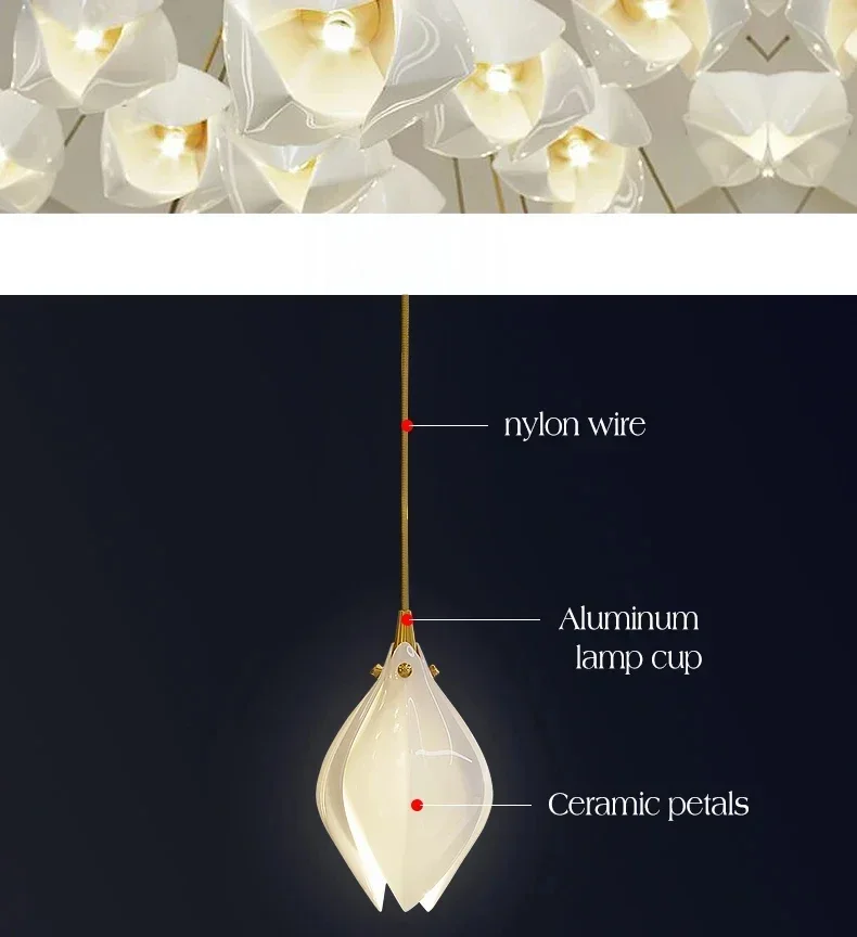 Ceramic Magnolia Chandelier for Staircase and Bedroom Lighting