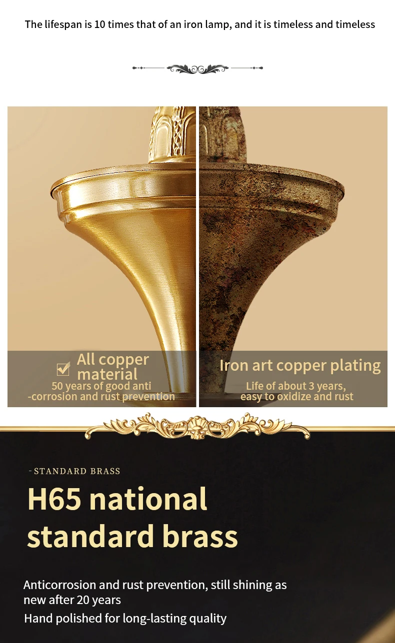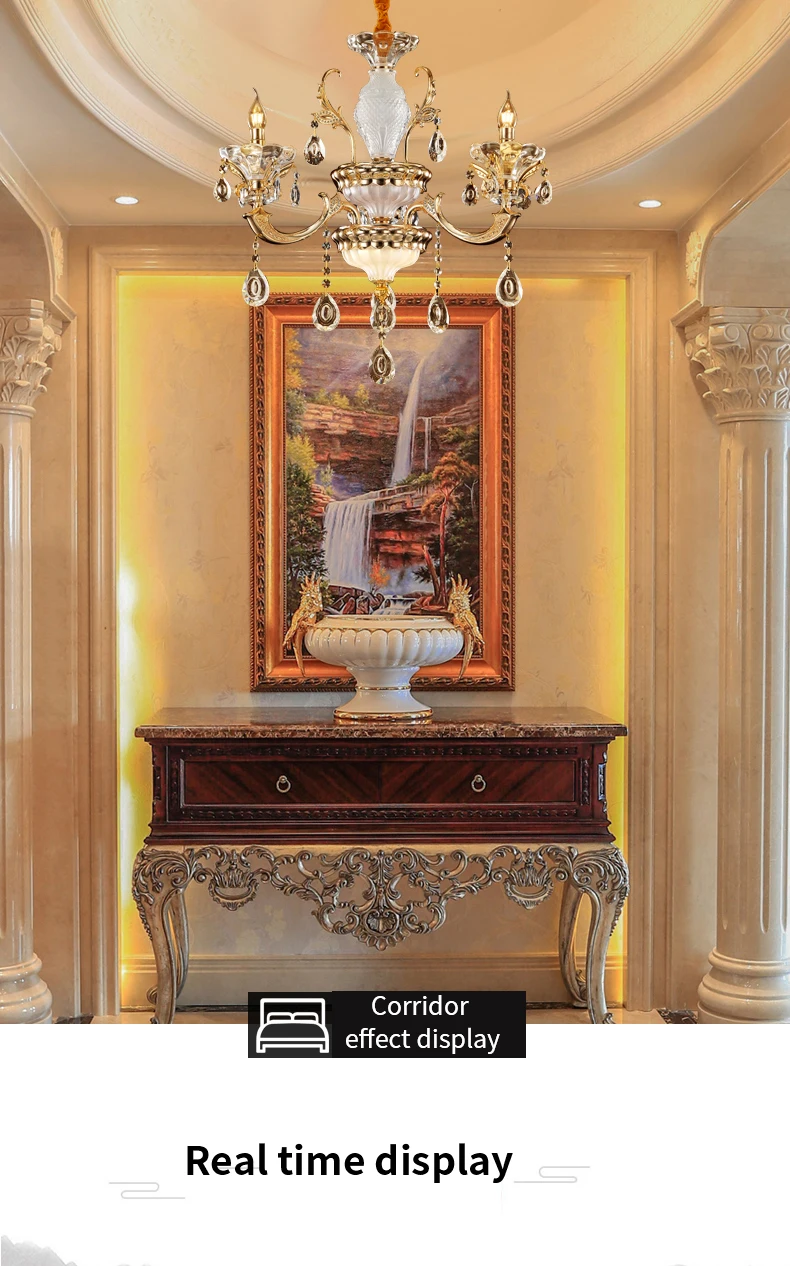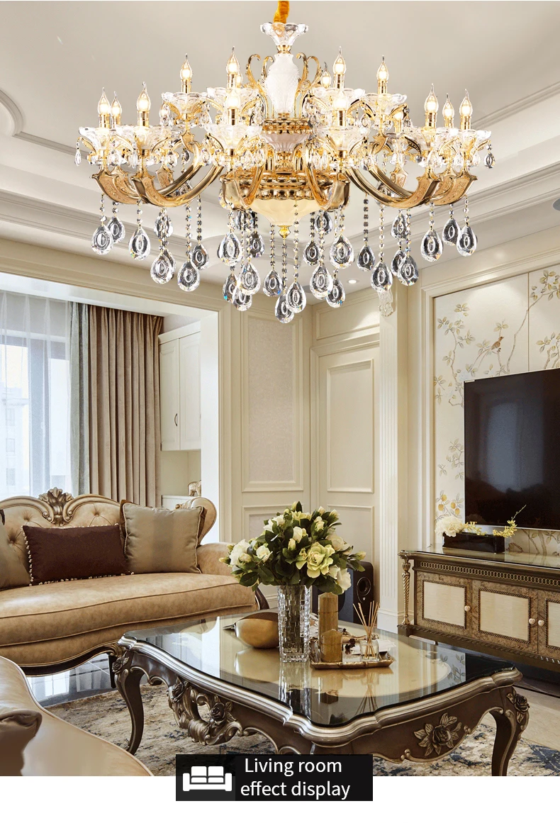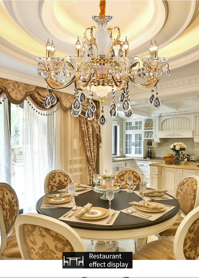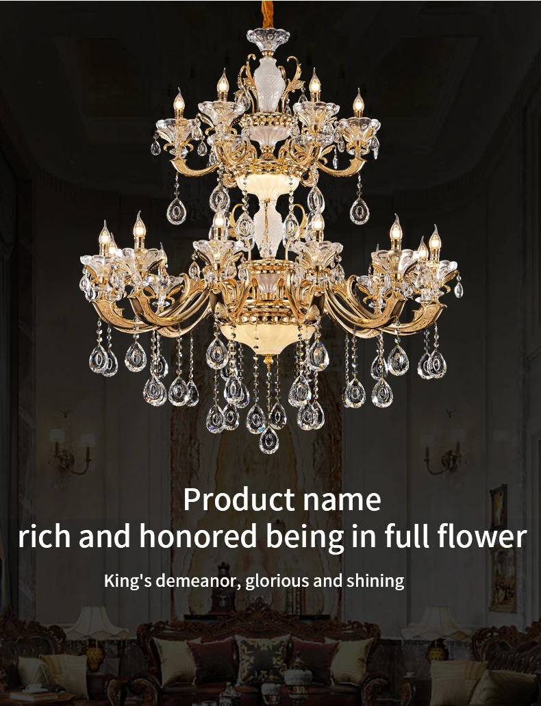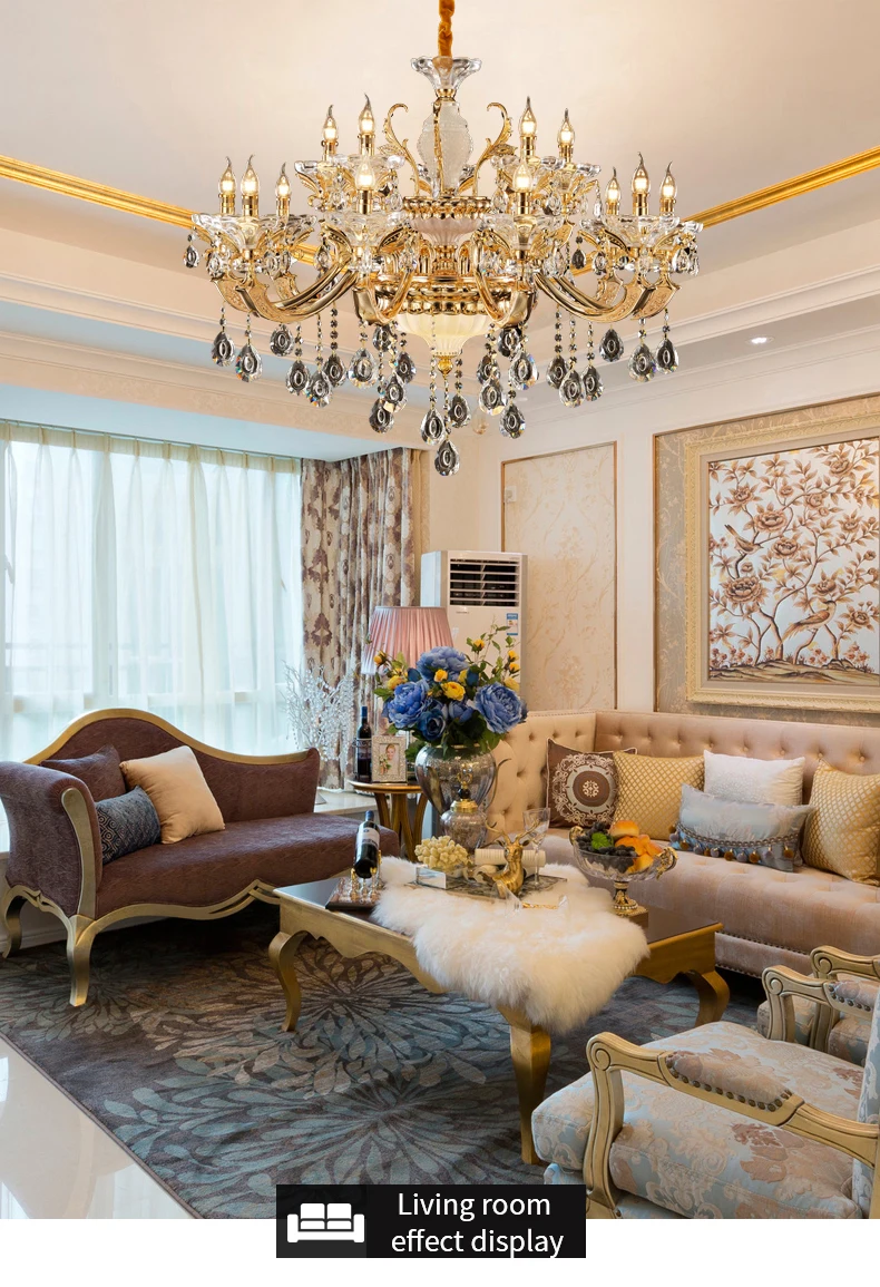 This crystal candle chandelier is designed to create an atmospheric and elegant lighting effect for classic interiors. Made with a polished copper body and crystal shade detailing, it adds a refined decorative touch to living rooms, dining spaces, and bedrooms while delivering balanced up and down lighting.