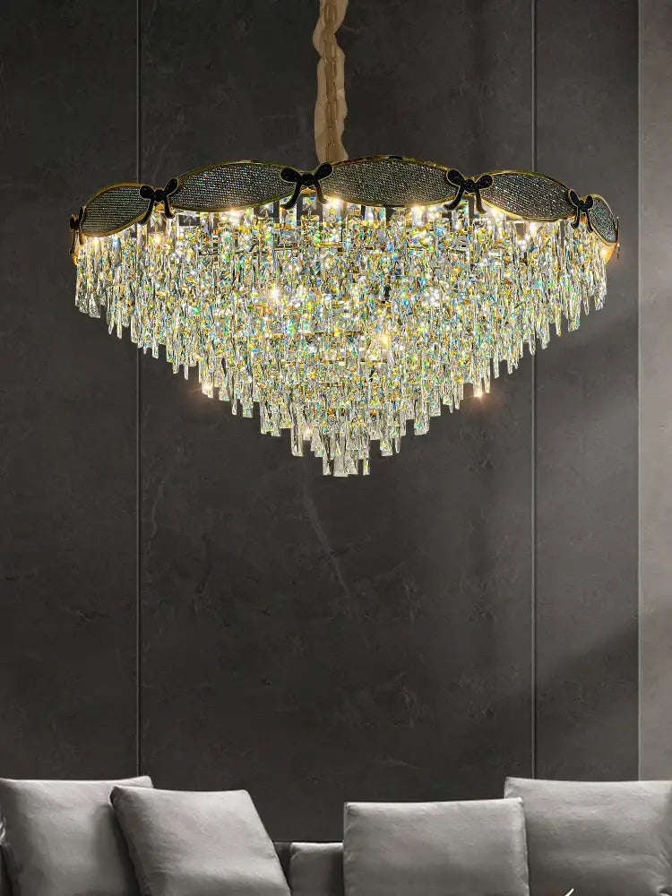 Elevate the ambiance of your living space with our Living Room Lamp. This exquisite lighting fixture embodies the postmodern light luxury style and features a crystal chandelier design. As a 2023 new addition, it brings a high-end sense of elegance to your interior decor, particularly in bedrooms and dining spaces. Illuminate your space with the warm and inviting glow of this atmospheric chandelier.