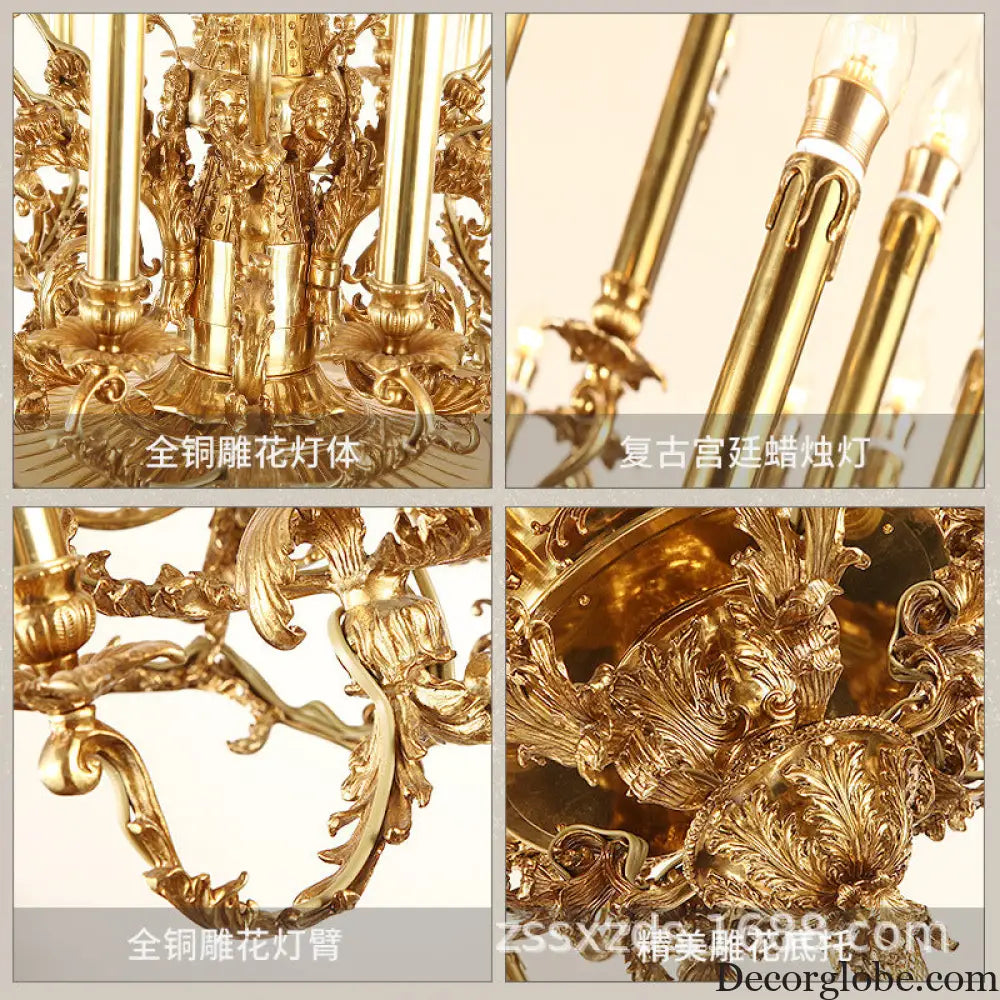 Villa living room chandelier European hotel restaurant copper candle lamp creative personality French duplex building