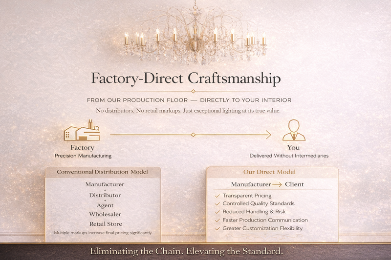 Each chandelier is made to order, thoughtfully crafted to reflect refined design and enduring quality. Production begins only after your order is placed, ensuring attention to detail, finish, and form in every piece.