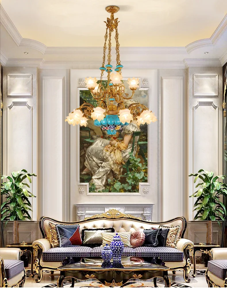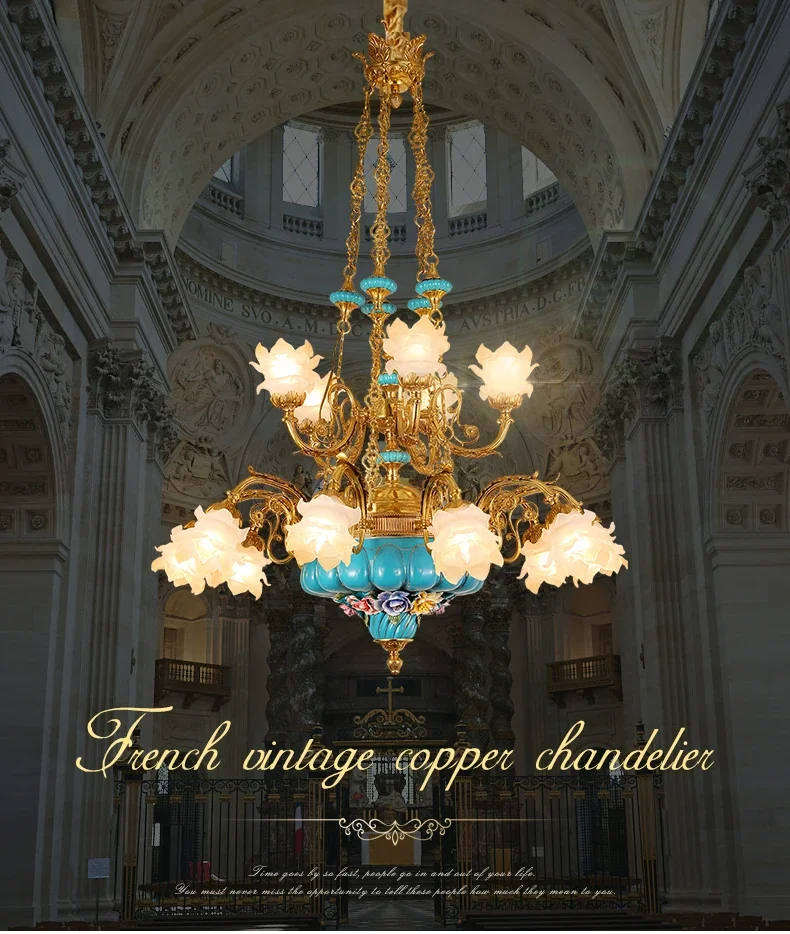 The CÉLORIN European Copper & Ceramic Grand Chandelier by Decor Globe is a refined expression of traditional European elegance, designed for expansive and prestigious interiors. Meticulously handcrafted using premium copper, brass elements, and ceramic detailing, this chandelier embodies heritage craftsmanship with a commanding architectural presence.