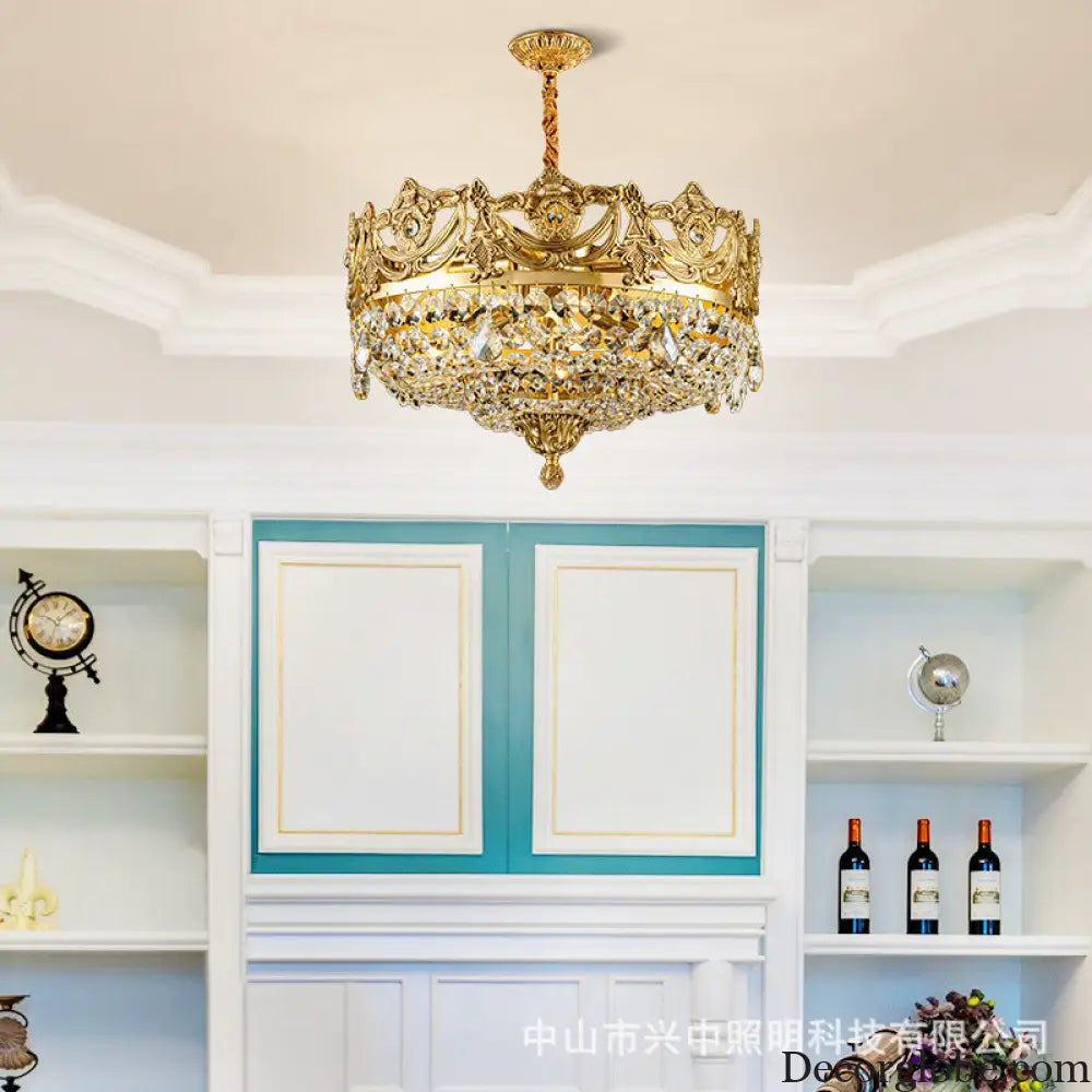 Eleanor French Crown Crystal Copper Chandelier for Living Room Diameter 45cm height 28cm Chandelier