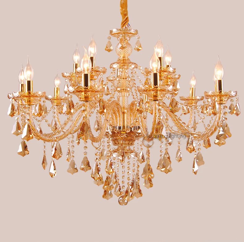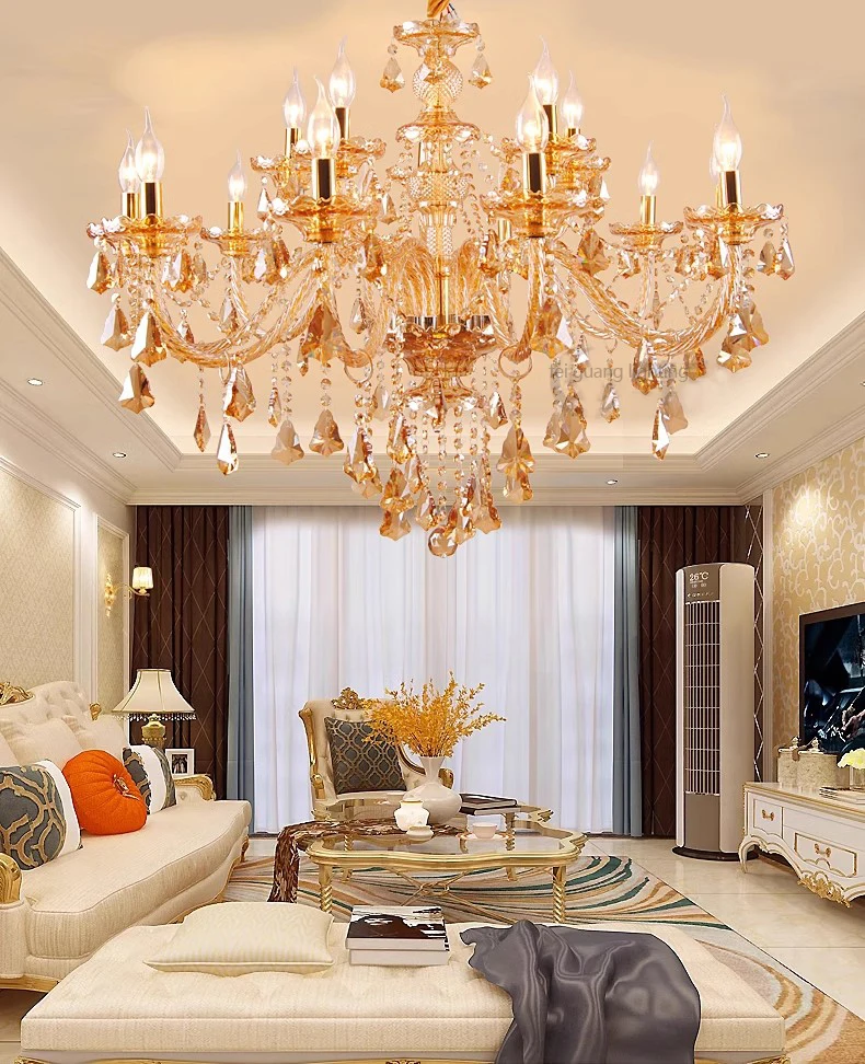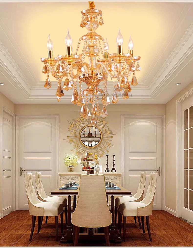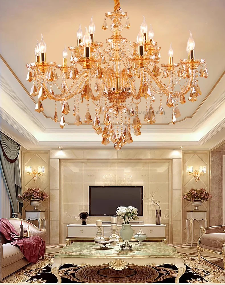 Designed for villas, living rooms, bedrooms, hotel lobbies, restaurants, and grand halls, this chandelier blends contemporary styling with timeless craftsmanship. Its polished finish and candle-inspired design create a striking centerpiece, making it ideal for both residential and upscale hospitality spaces.